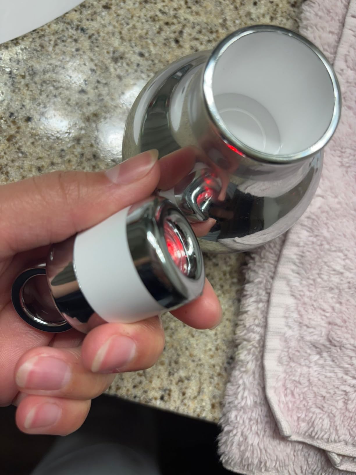Cooling metal tip instantly refreshes on contact.